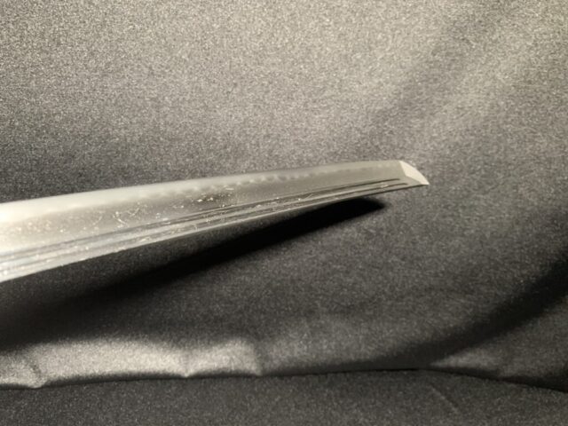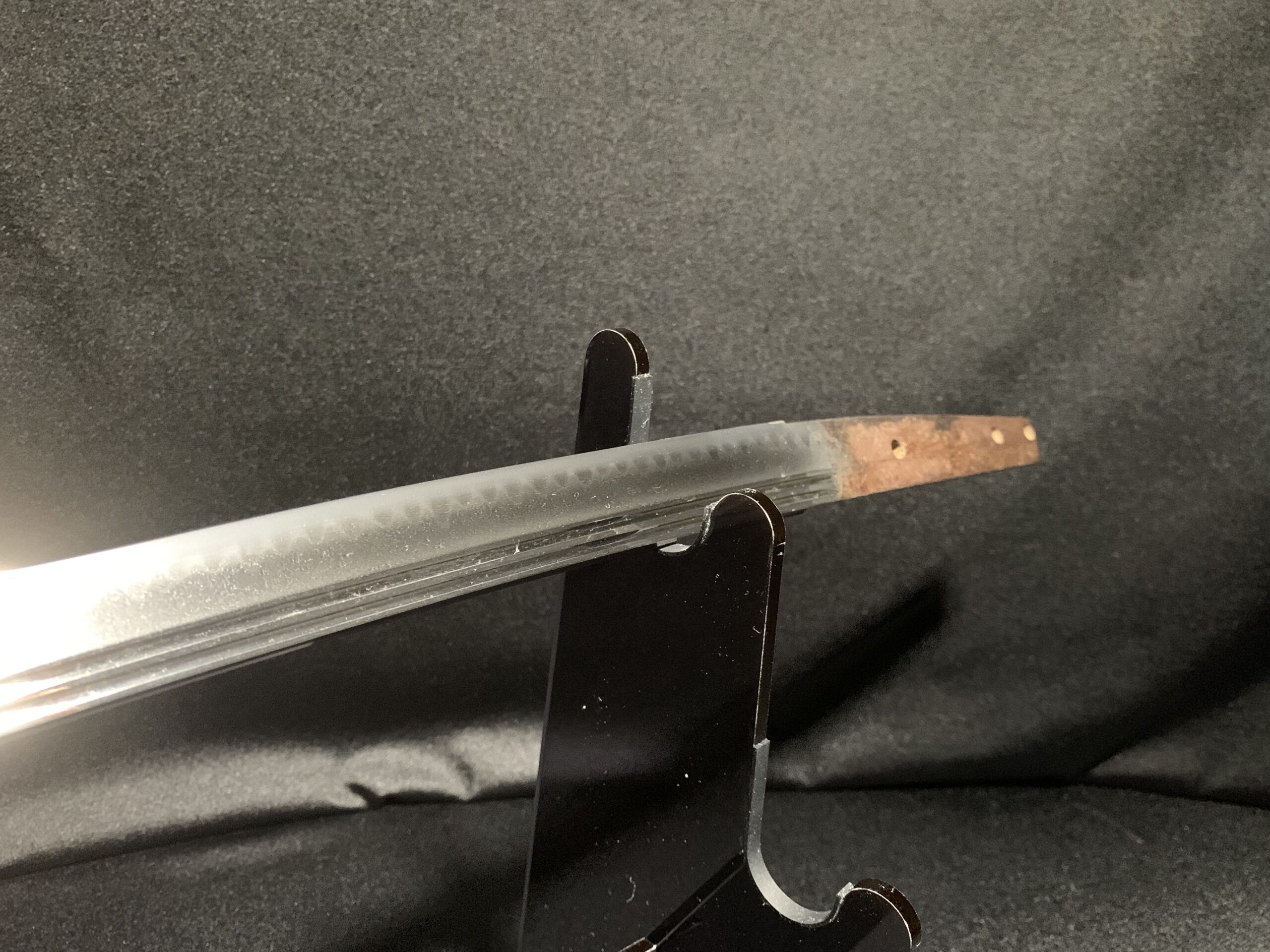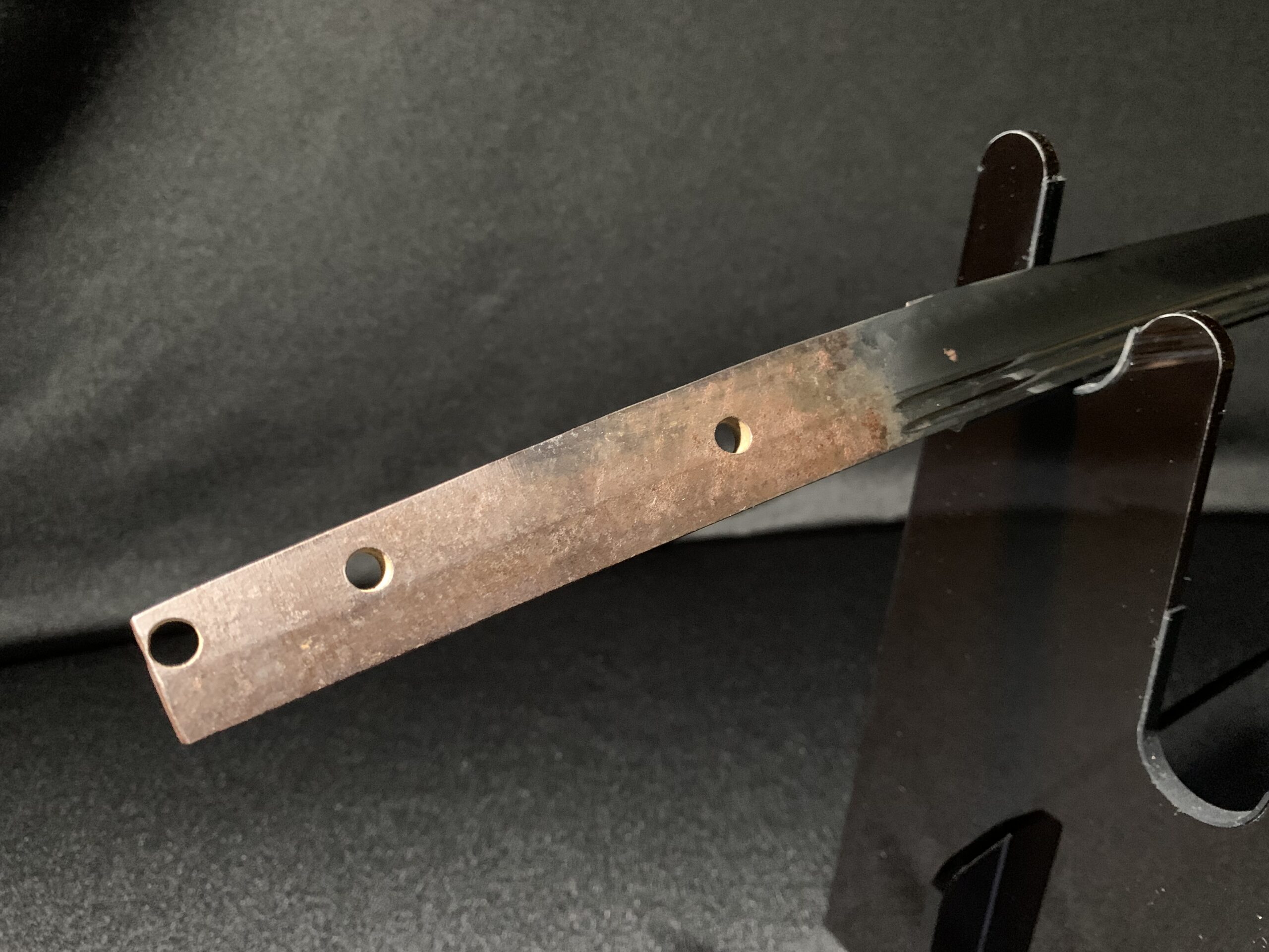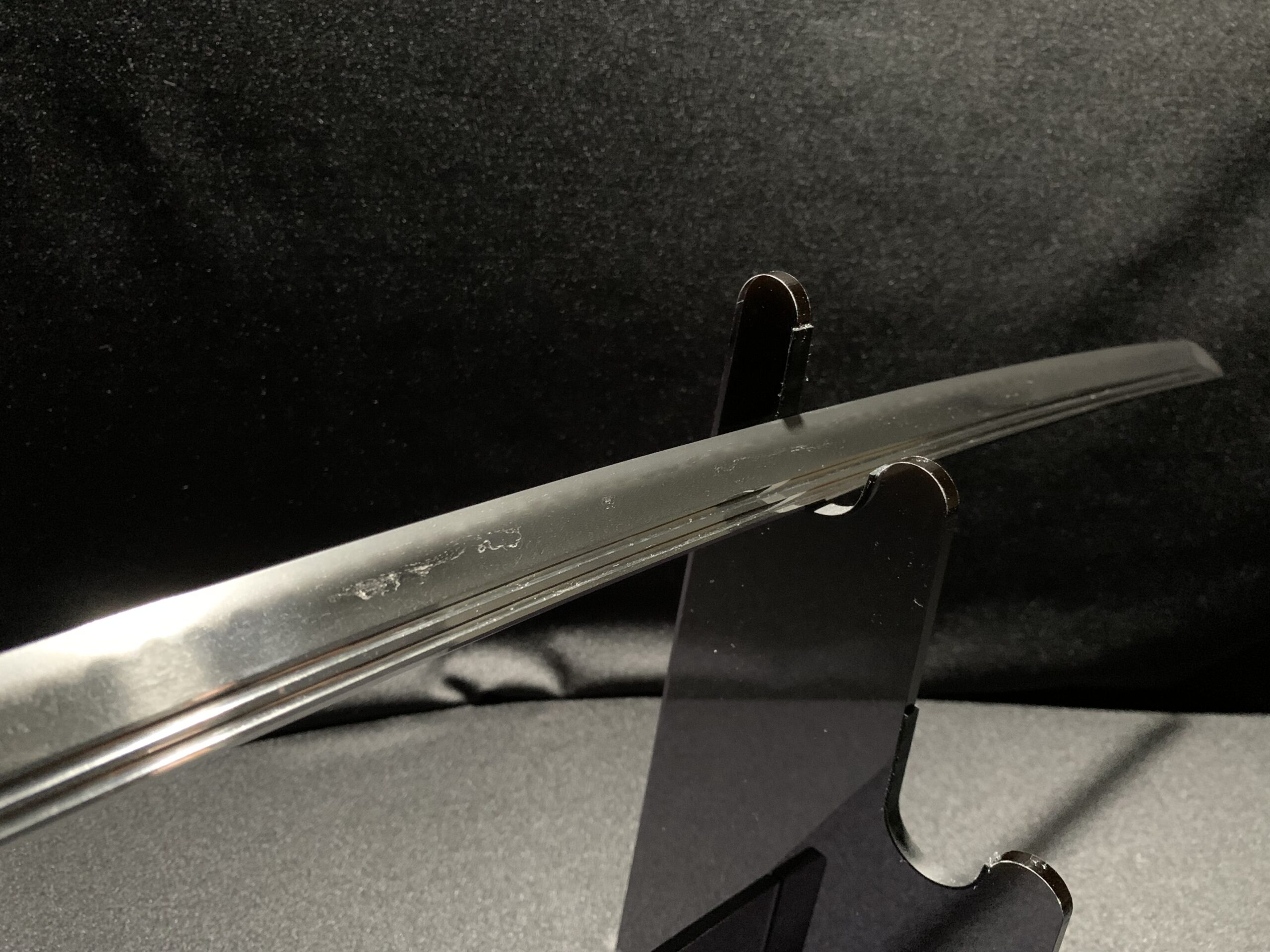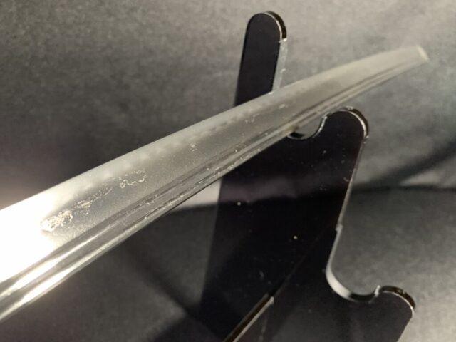Es trägt oft eine Mei(銘), also eine Signatur, die den Namen des Schwertschmieds und das Herstellungsdatum enthalten kann.