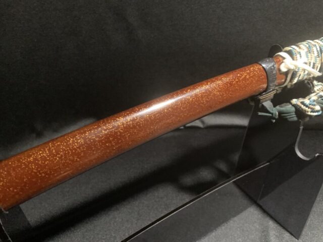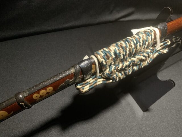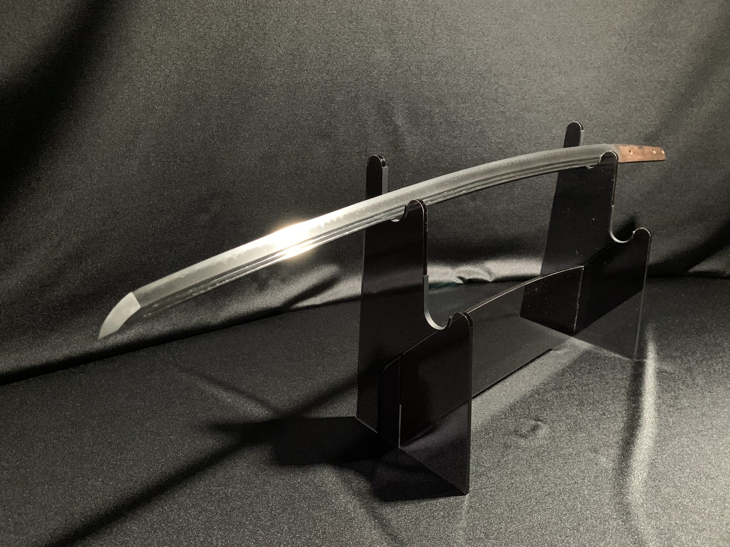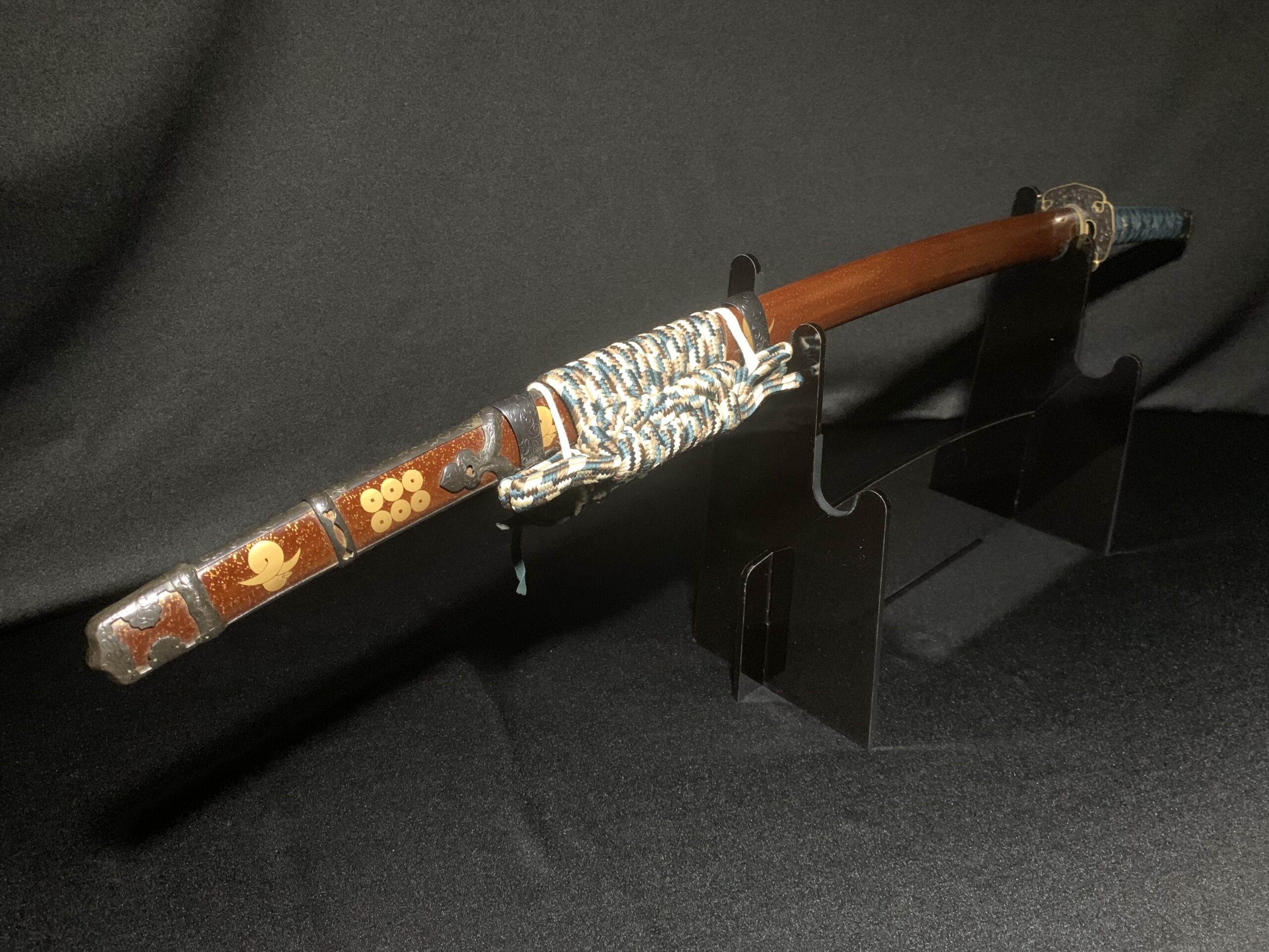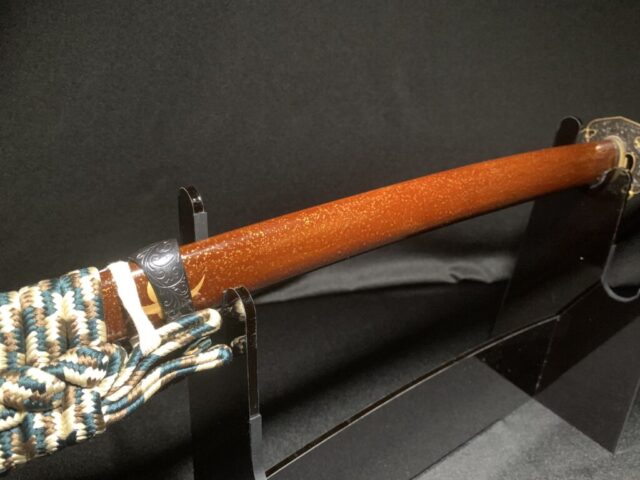 Kanesaki(兼先)war ein hoch angesehener Schwertschmied, dessen Ruf ihm Erfolg in verschiedenen Regionen einbrachte. Dieses Stück besitzt ein außergewöhnlich gut gearbeitetes Koshirae(拵え, die Schwertmontierung), das zusammen mit der Klinge ausgestellt eine elegante und verfeinerte Präsenz ausstrahlt.