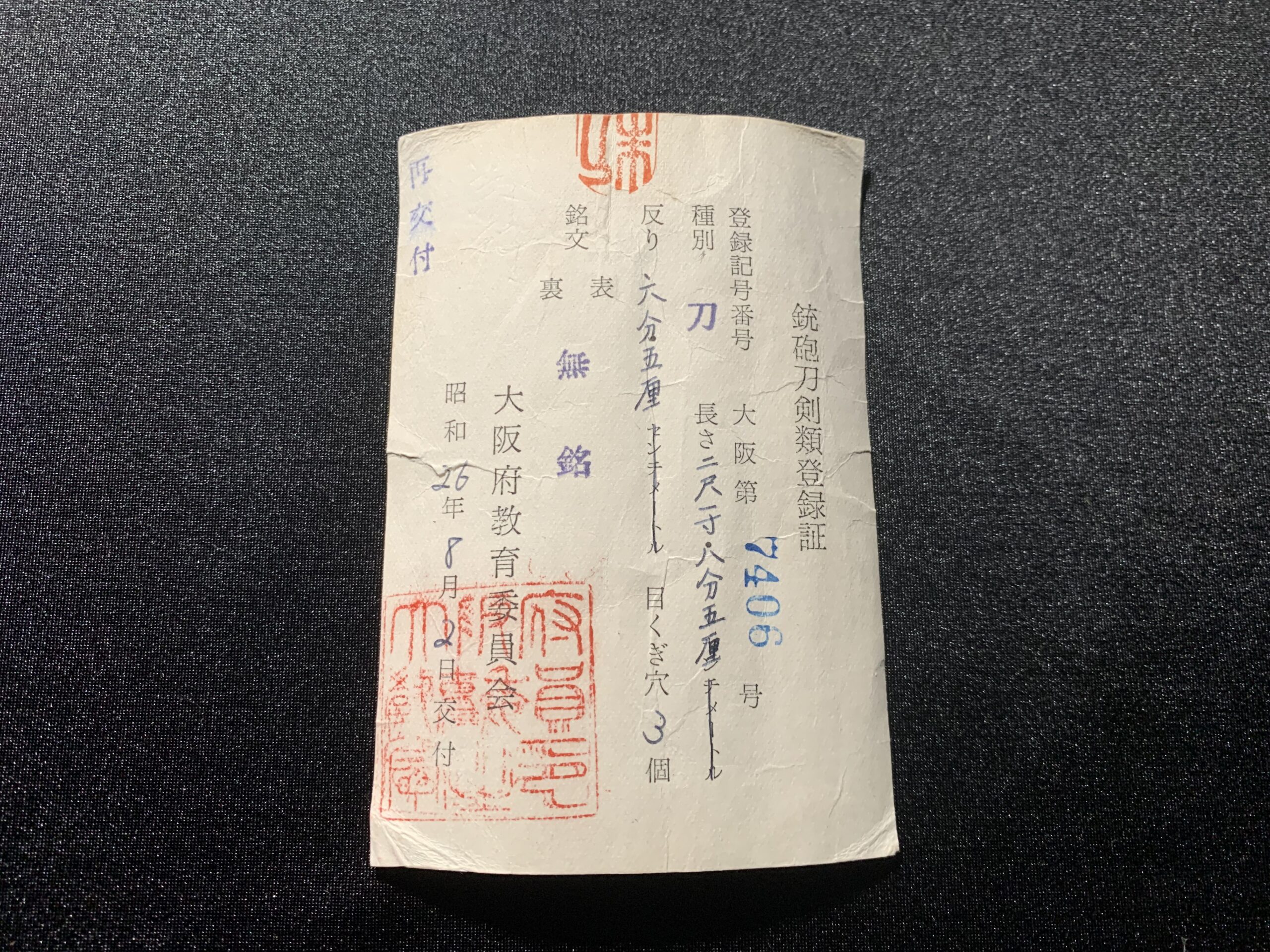 Alle authentischen Katanas sind beim Bildungsamt der jeweiligen Präfektur registriert.