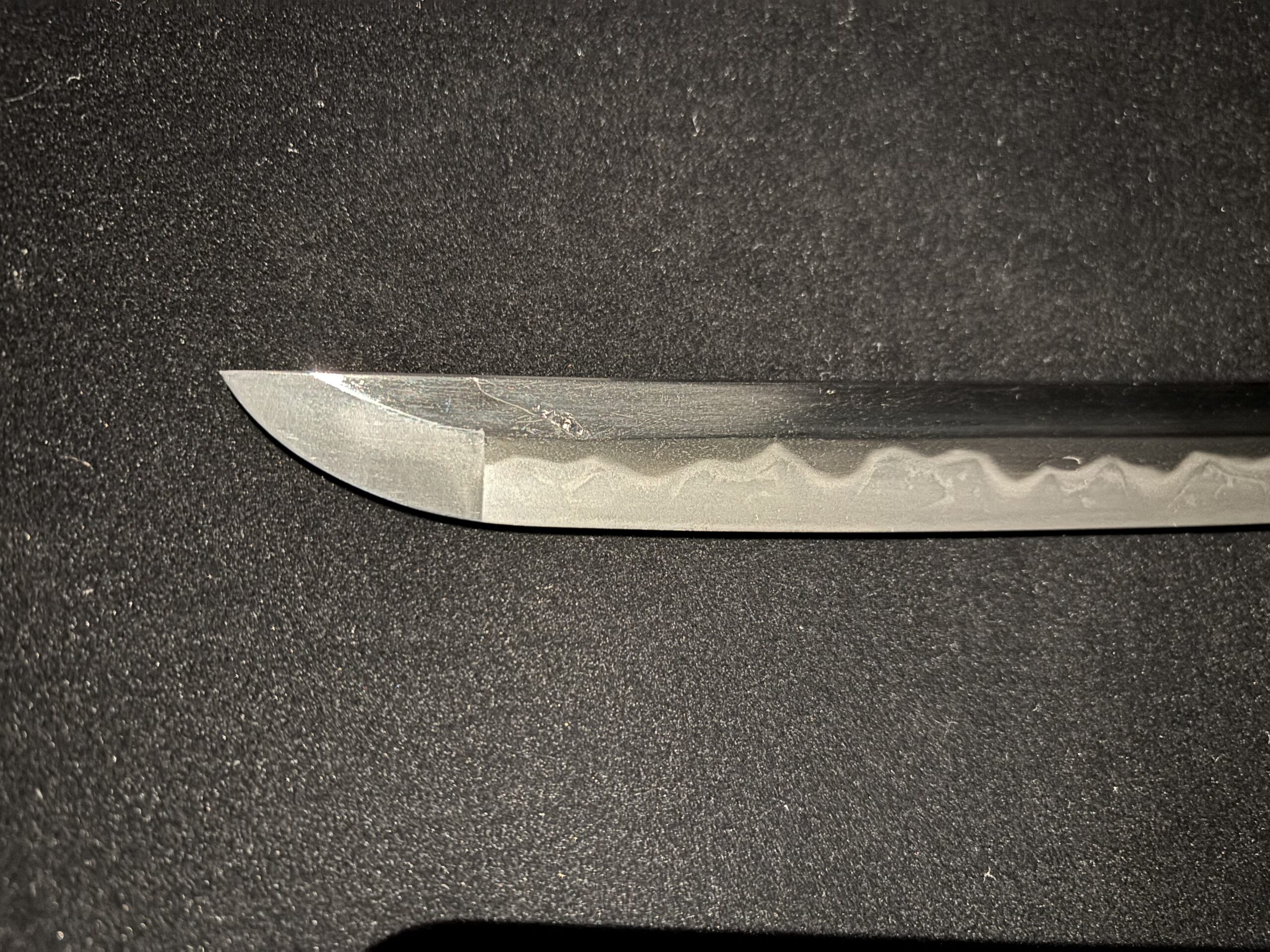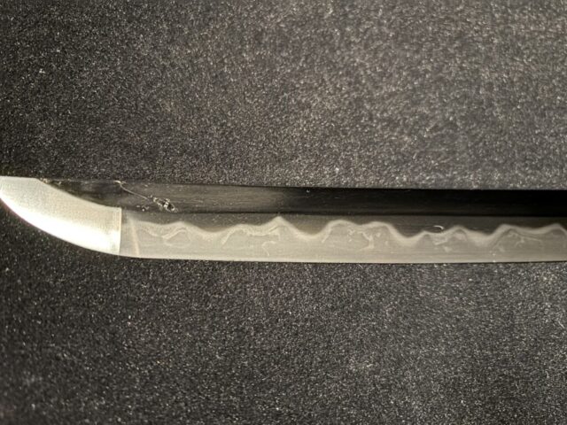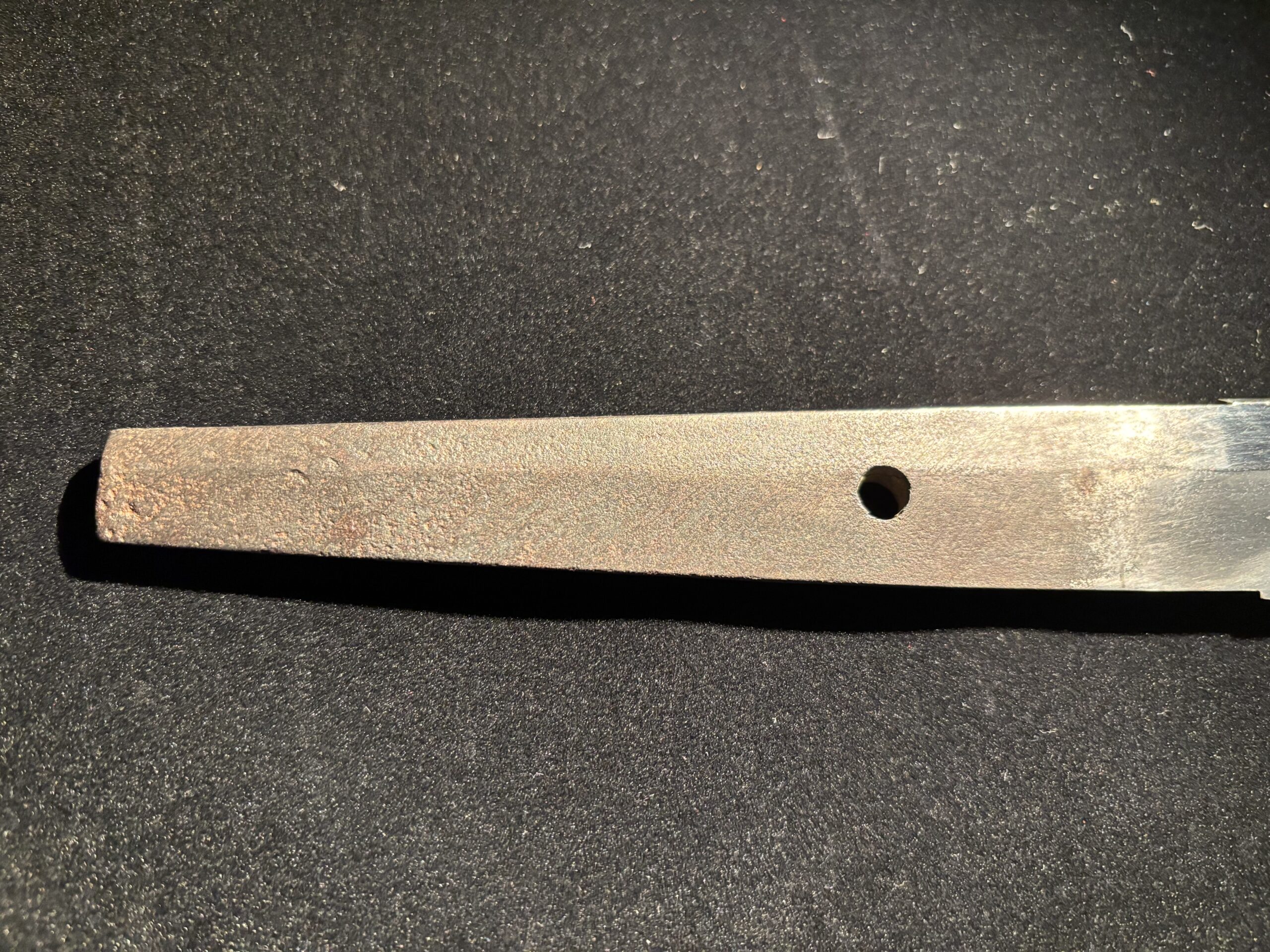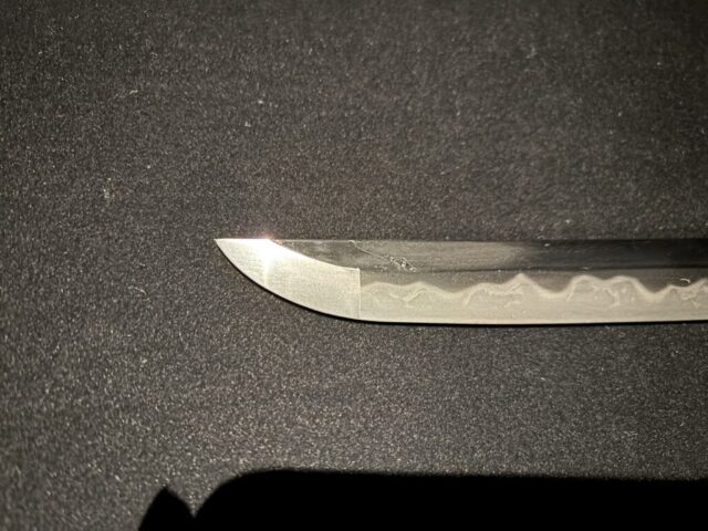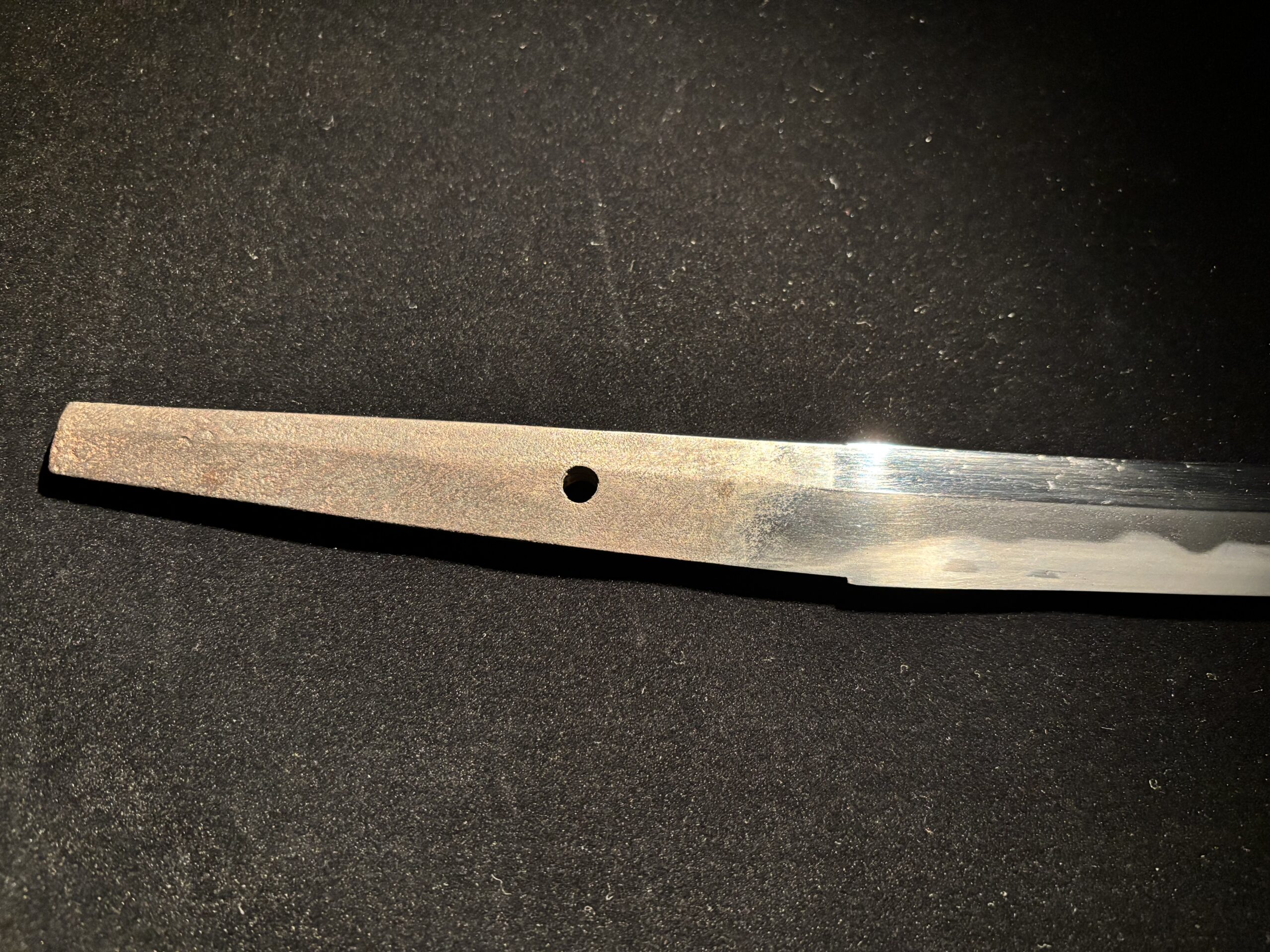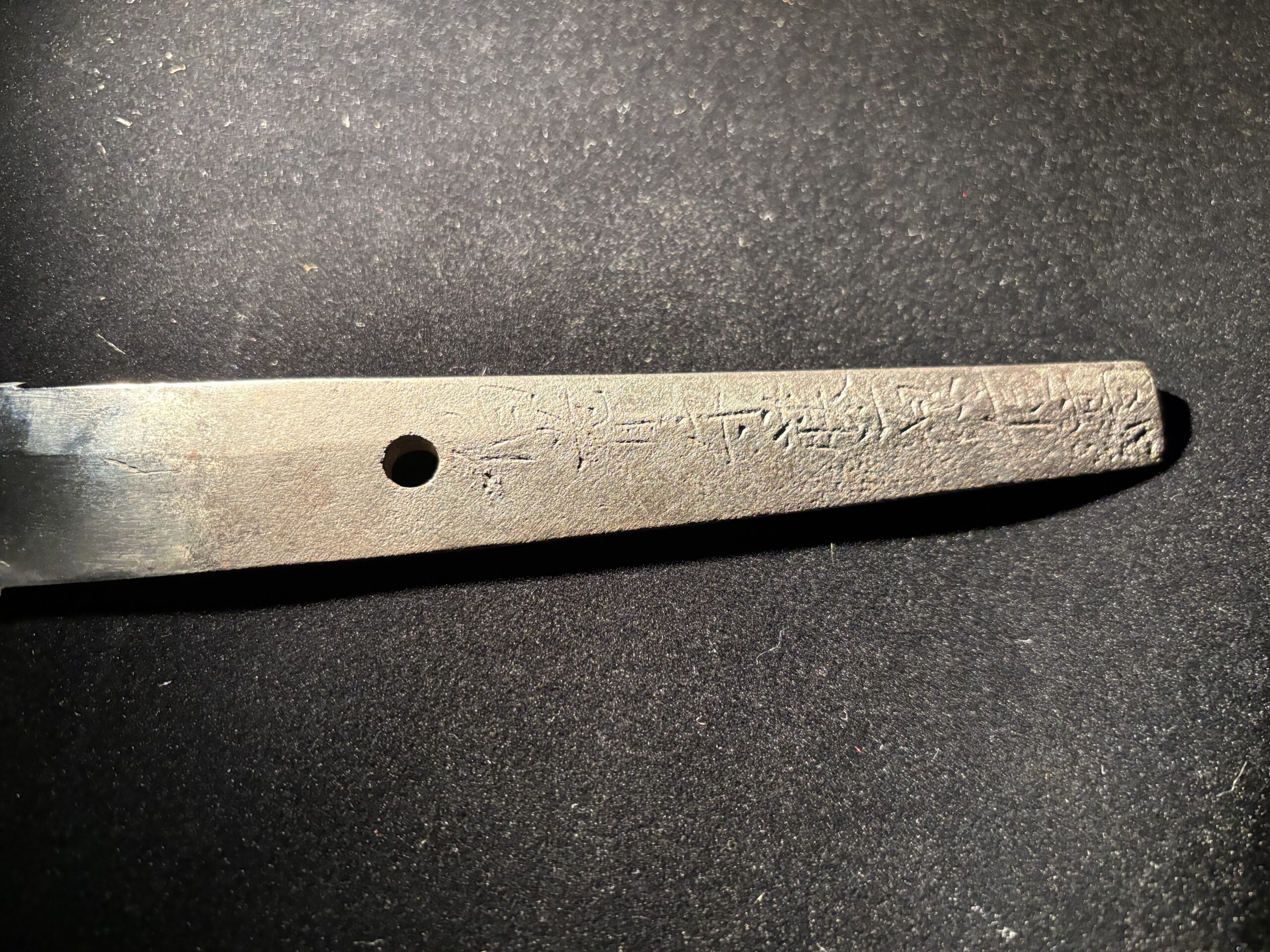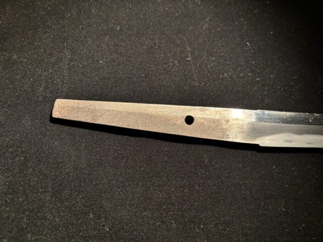Es trägt oft eine Mei(銘), also eine Signatur, die den Namen des Schwertschmieds und das Herstellungsdatum enthalten kann.
