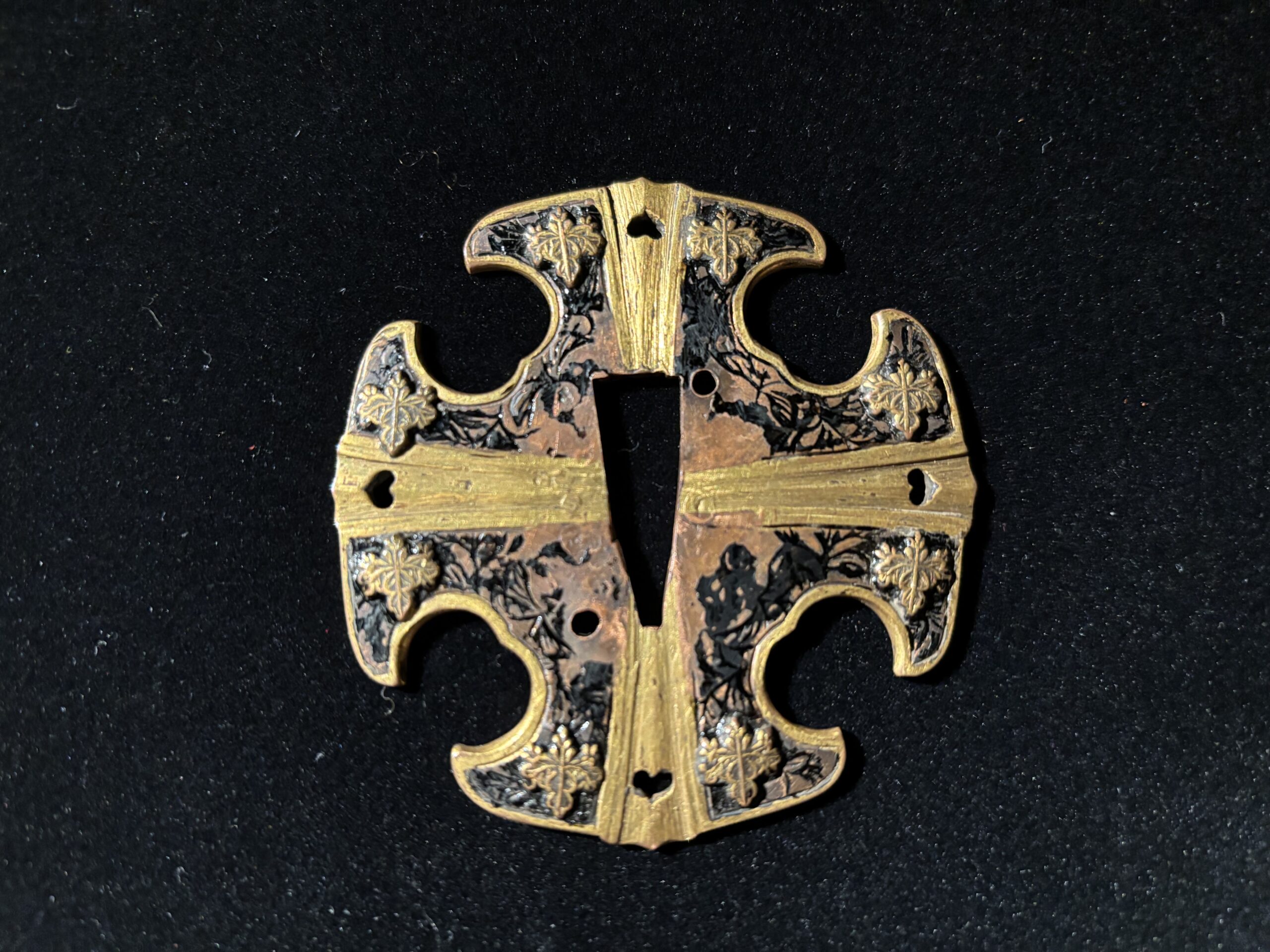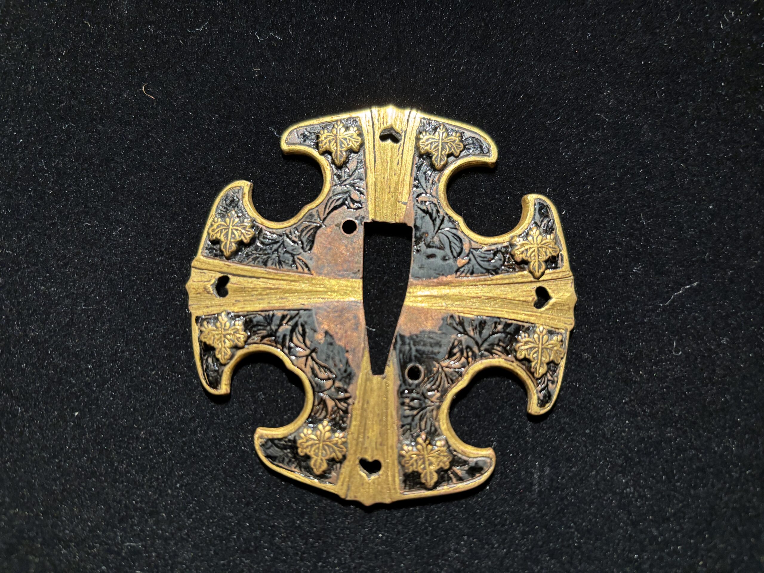 Die Tsuba ist ein Metallbeschlag, der zwischen dem Toshin(Klinge)und dem Griff positioniert ist. Ihre Hauptfunktion ist es, die Hand des Trägers im Kampf vor der Klinge des Gegners zu schützen.