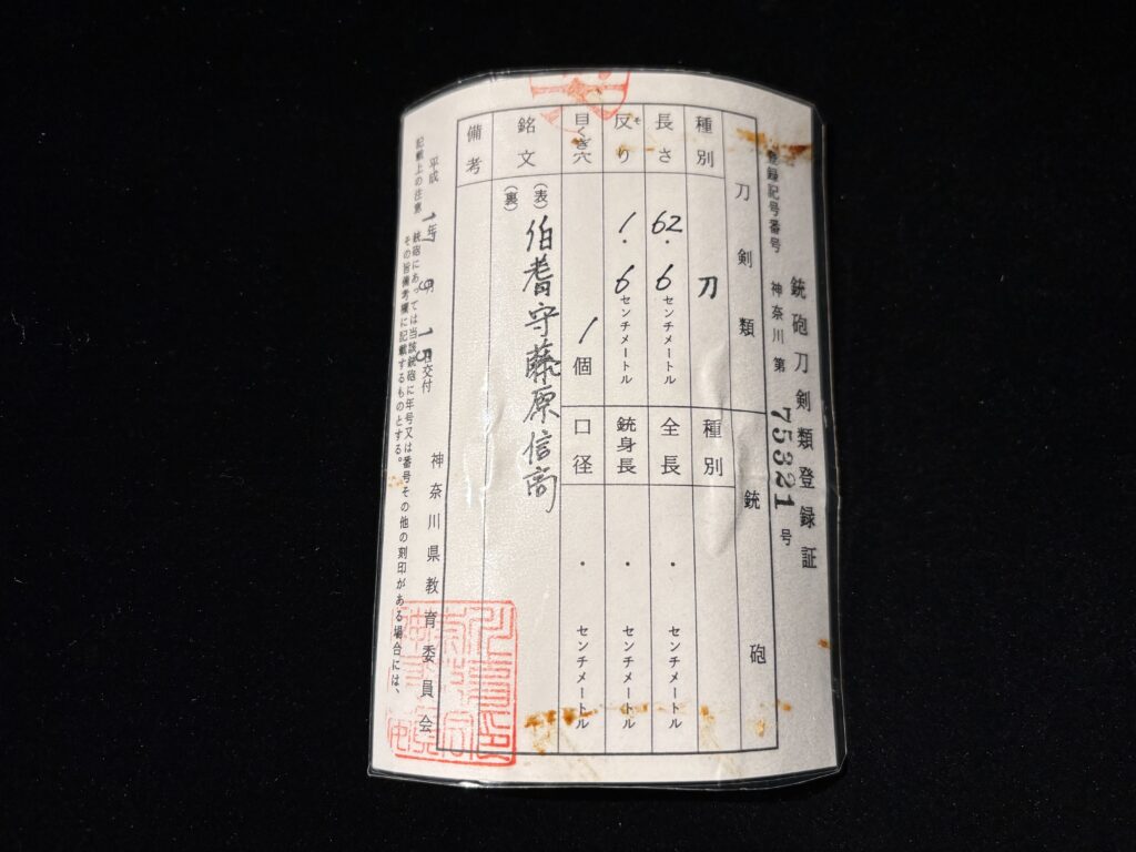 Alle authentischen Katanas sind beim Bildungsamt der jeweiligen Präfektur registriert.