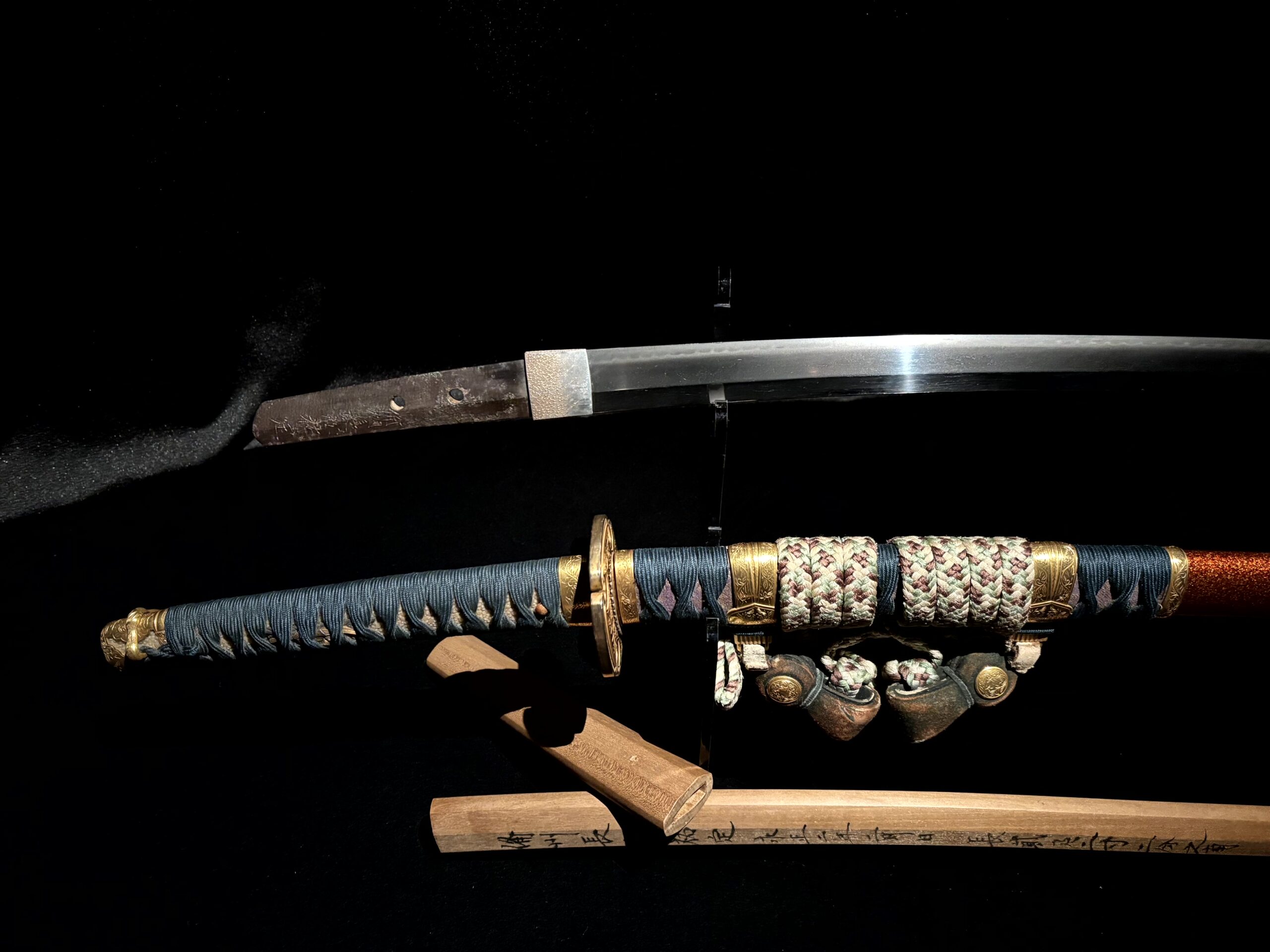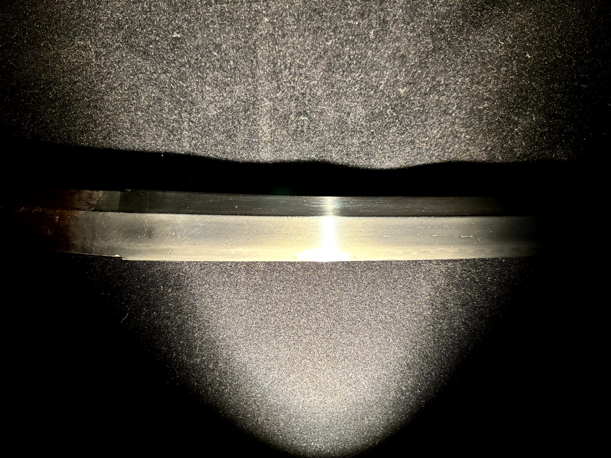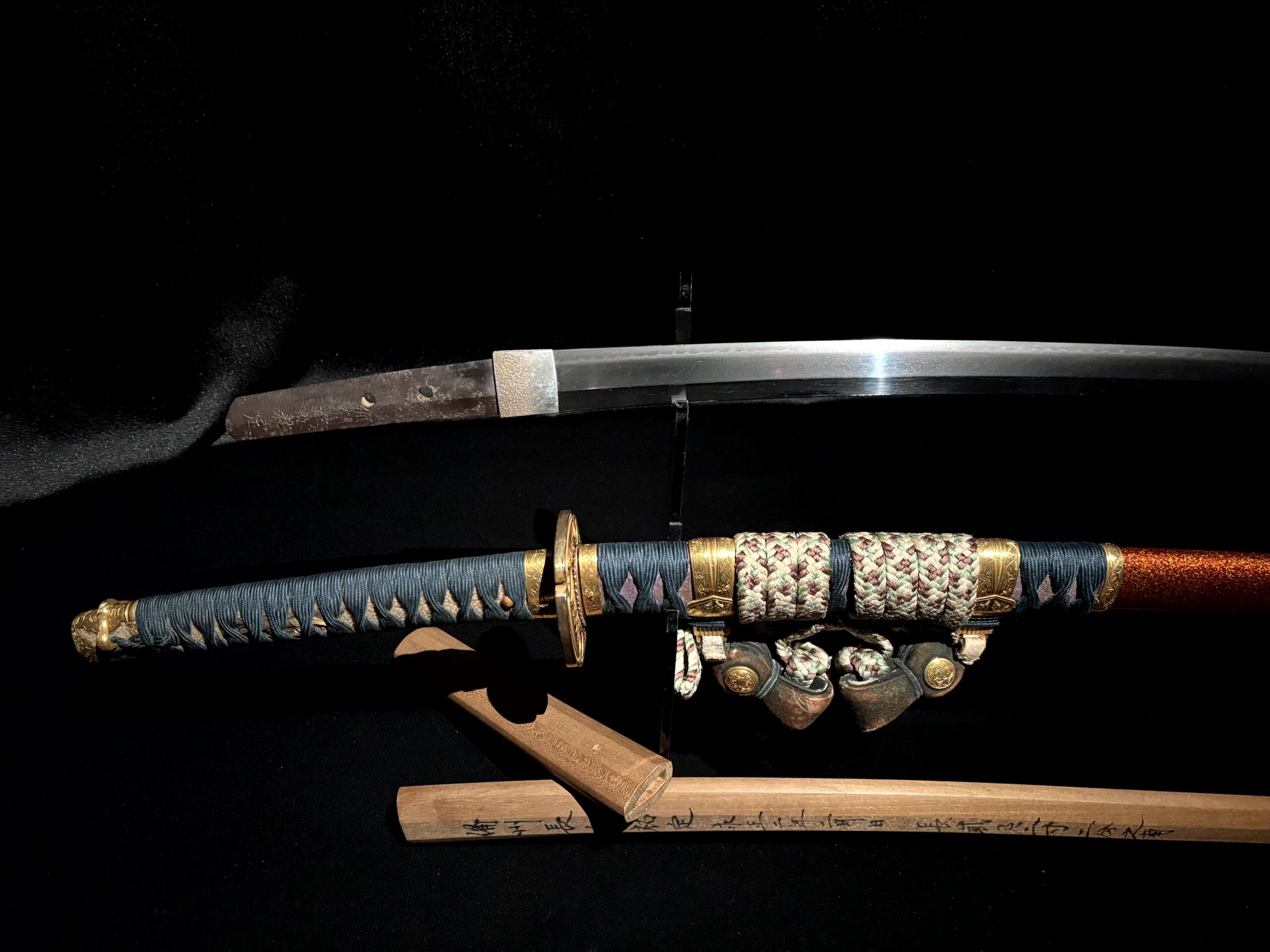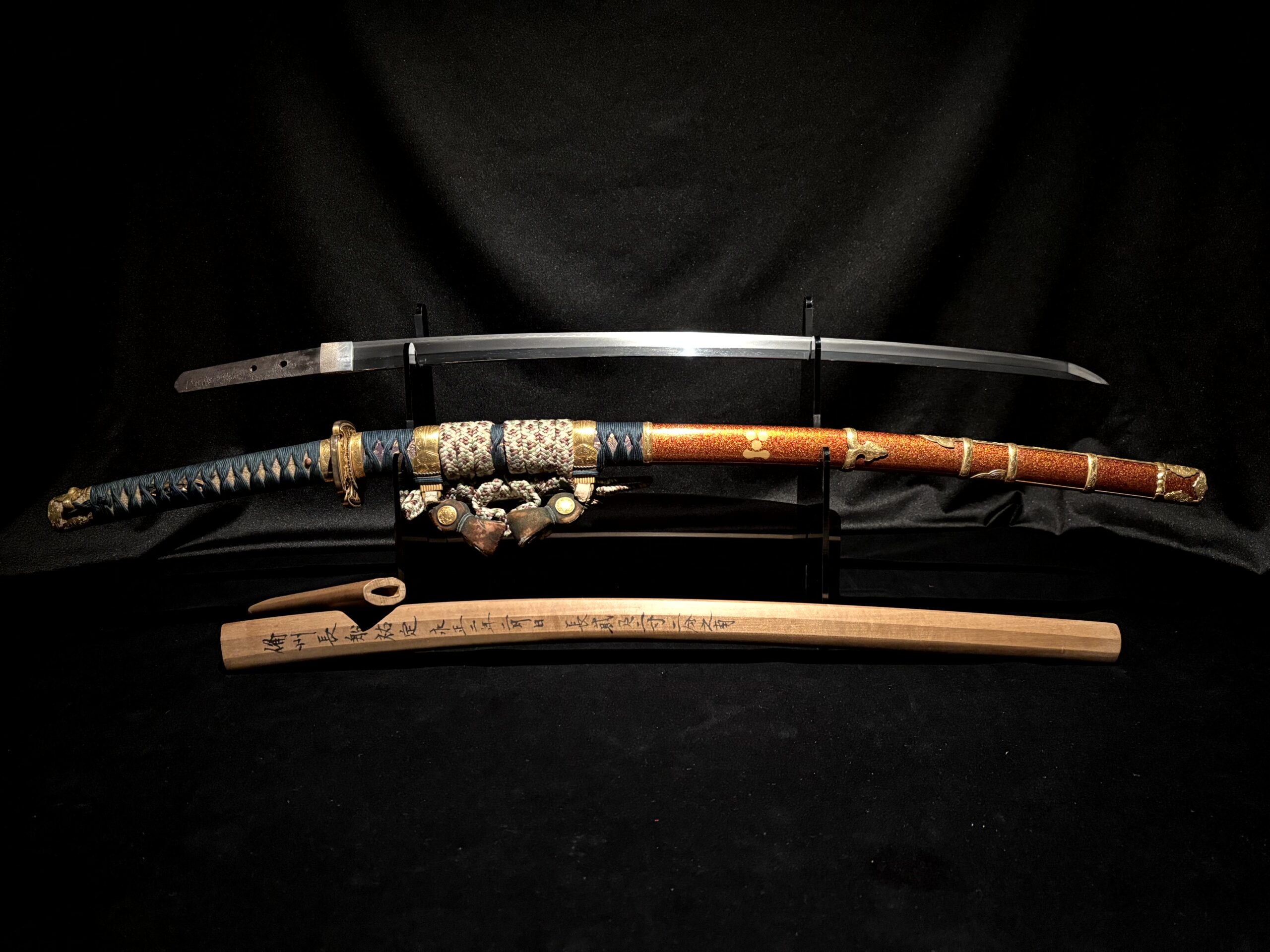 Hinzu kommt ein sorgfältig gefertigtes Tachi-Koshirae(Montierung im Tachi-Stil)sowie ein Sayagaki(Scheidenbeschriftung), der seine Herkunft bestätigt. Insgesamt ein vollständiges Paket aus Kunstfertigkeit, Erbe und Authentizität.