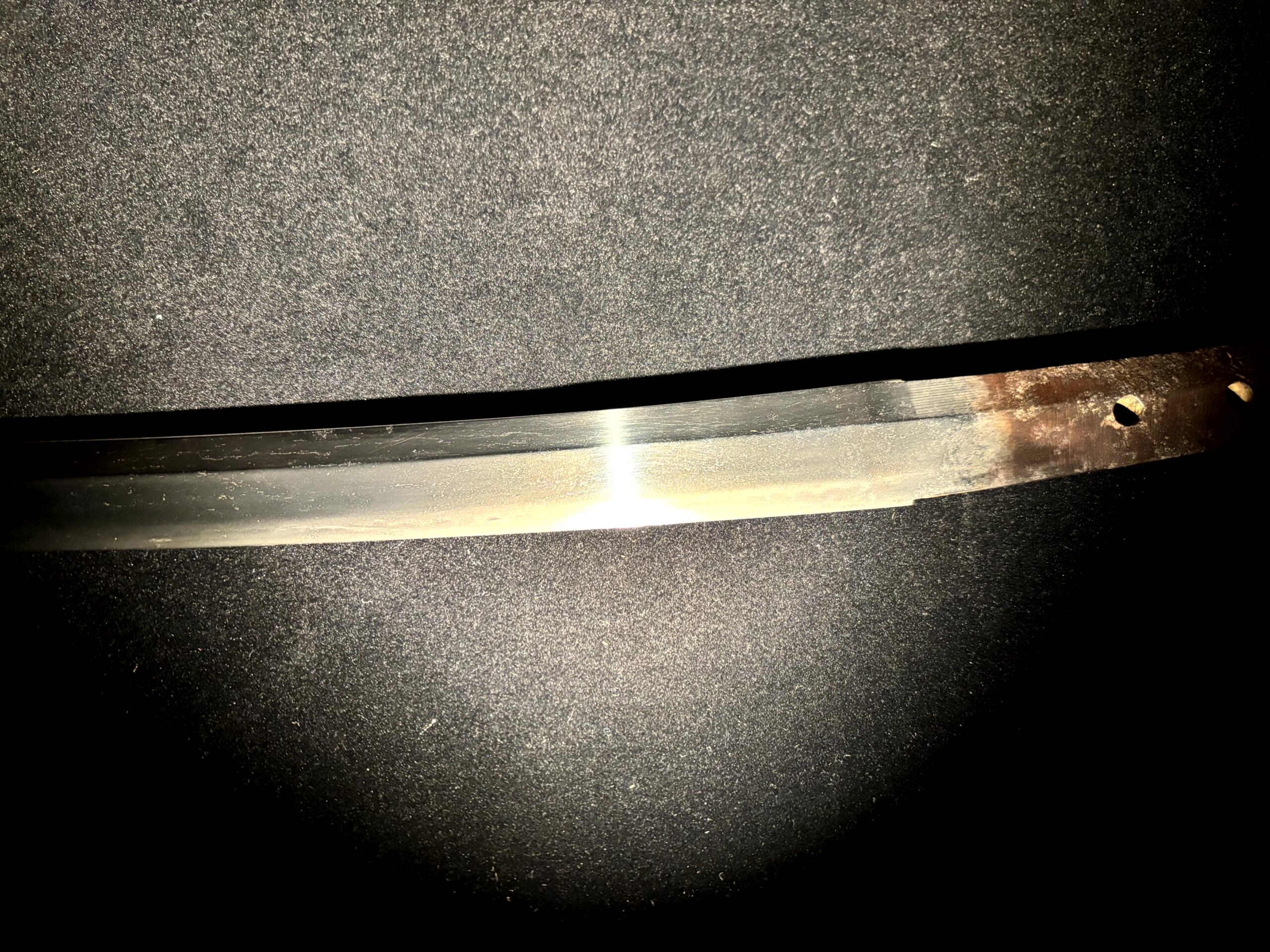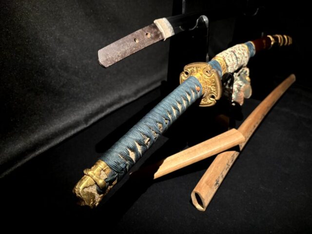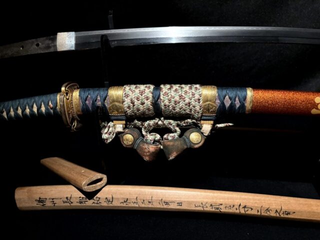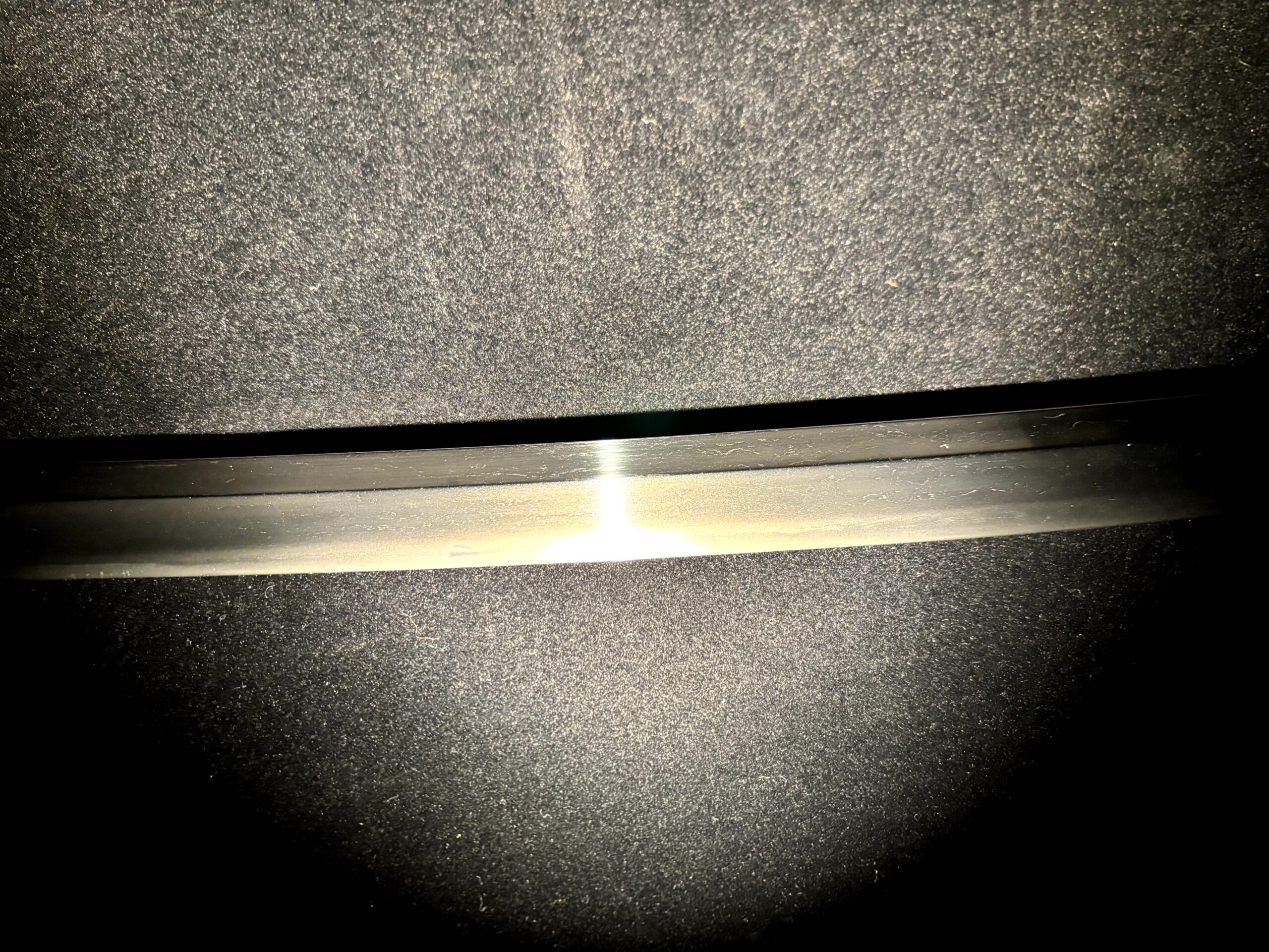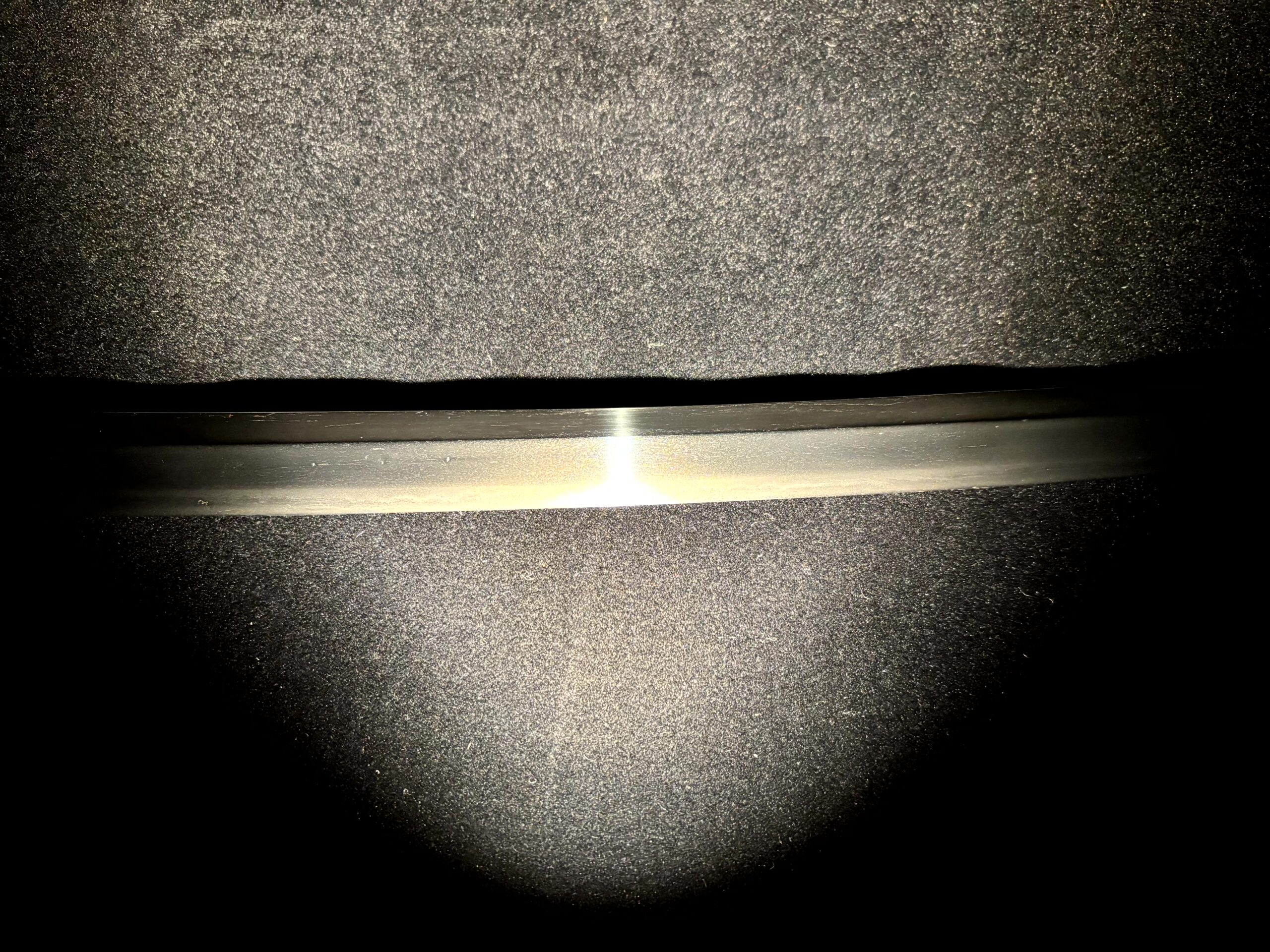 Hinzu kommt ein sorgfältig gefertigtes Tachi-Koshirae(Montierung im Tachi-Stil)sowie ein Sayagaki(Scheidenbeschriftung), der seine Herkunft bestätigt. Insgesamt ein vollständiges Paket aus Kunstfertigkeit, Erbe und Authentizität.