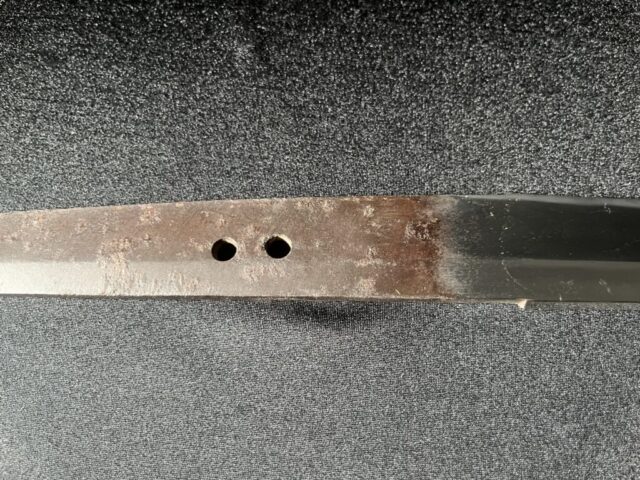 Es trägt oft eine Mei(銘), also eine Signatur, die den Namen des Schwertschmieds und das Herstellungsdatum enthalten kann.
