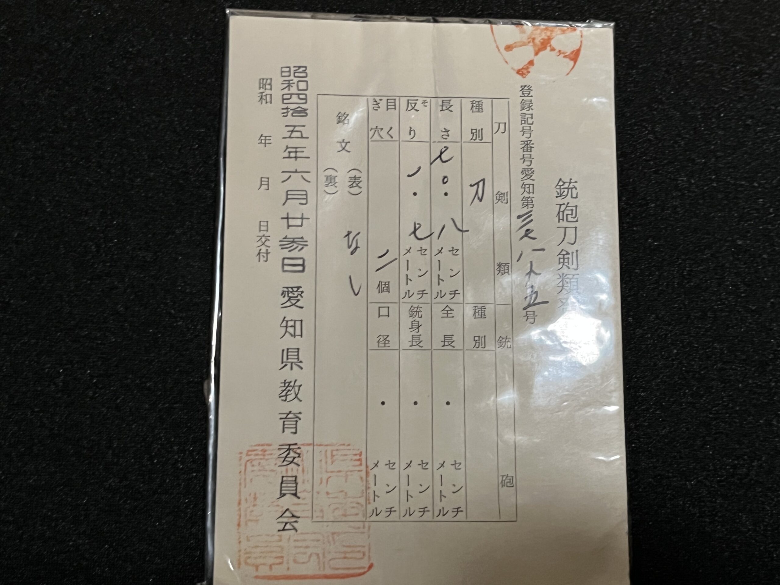 Tous les vrais Katanas sont enregistrés auprès du Conseil de l’éducation de la préfecture dans laquelle ils se trouvent.
