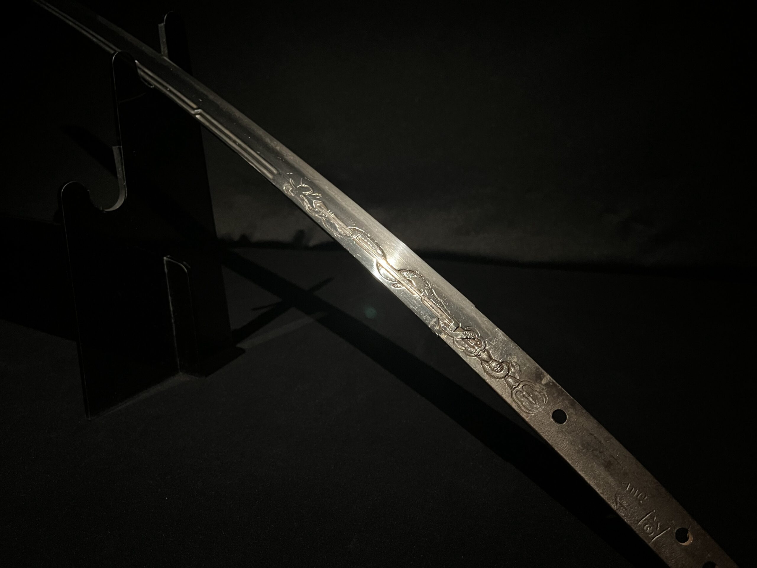 Les lames ornées de telles sculptures sont extrêmement rares et sont particulièrement recherchées par les collectionneurs qui apprécient les sabres non seulement comme armes, mais aussi comme profondes œuvres d’art.