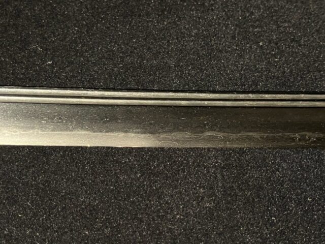 Un katana d’une rareté exceptionnelle — rarement vu même dans les ventes aux enchères nationales de premier rang — alliant rareté et qualité remarquable, tant dans le Hamon que dans le Jigane.