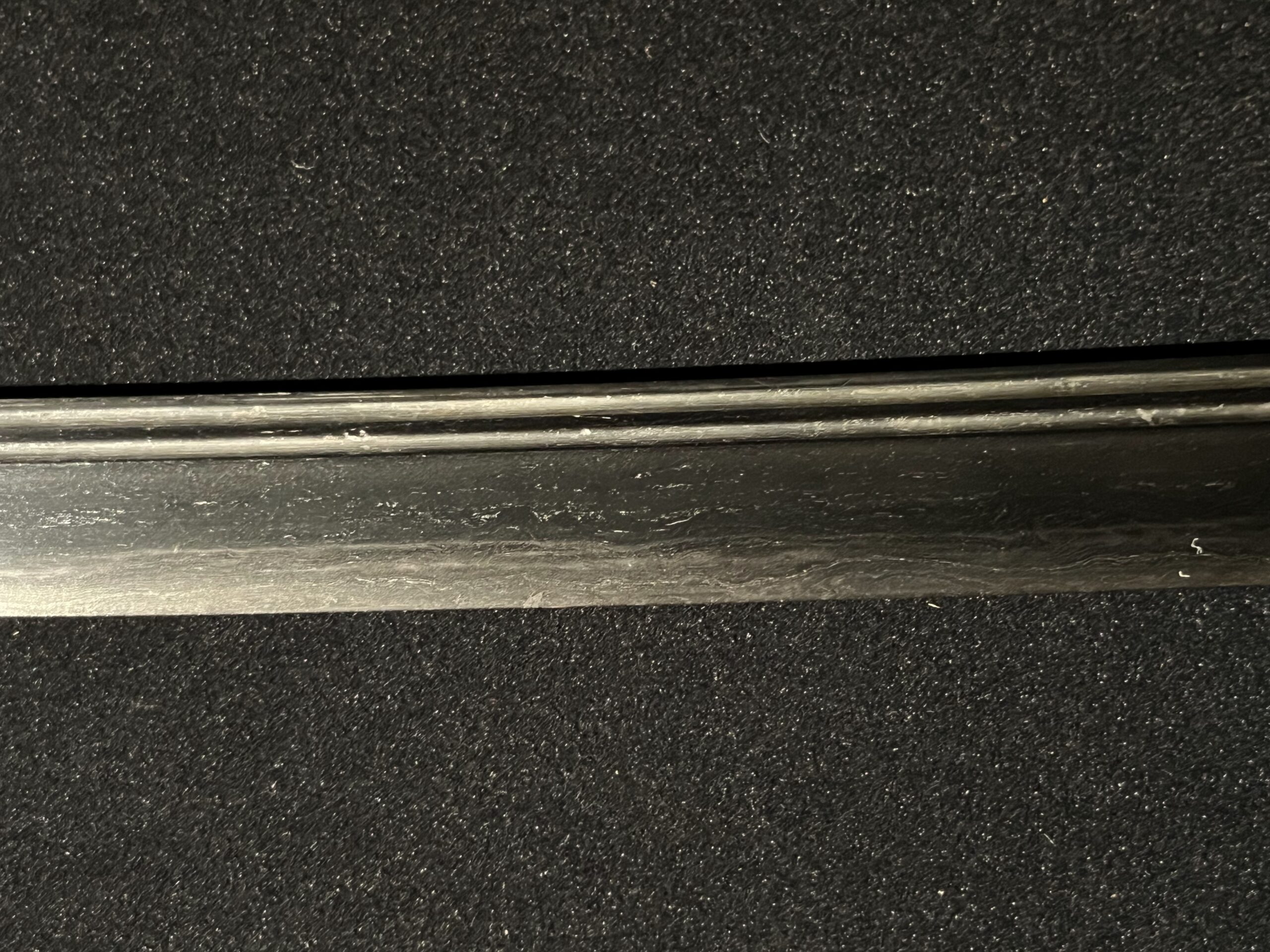 Ces motifs se forment lorsque le tamahagane — l’acier issu du sable ferrugineux, matière première du sabre — est plié et forgé à de nombreuses reprises.