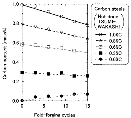 Naohiko Sasaki and Tadashi Momono(2007). Changes in Carbon Content of Materials of the Japanese Sword under Traditional Forging Process