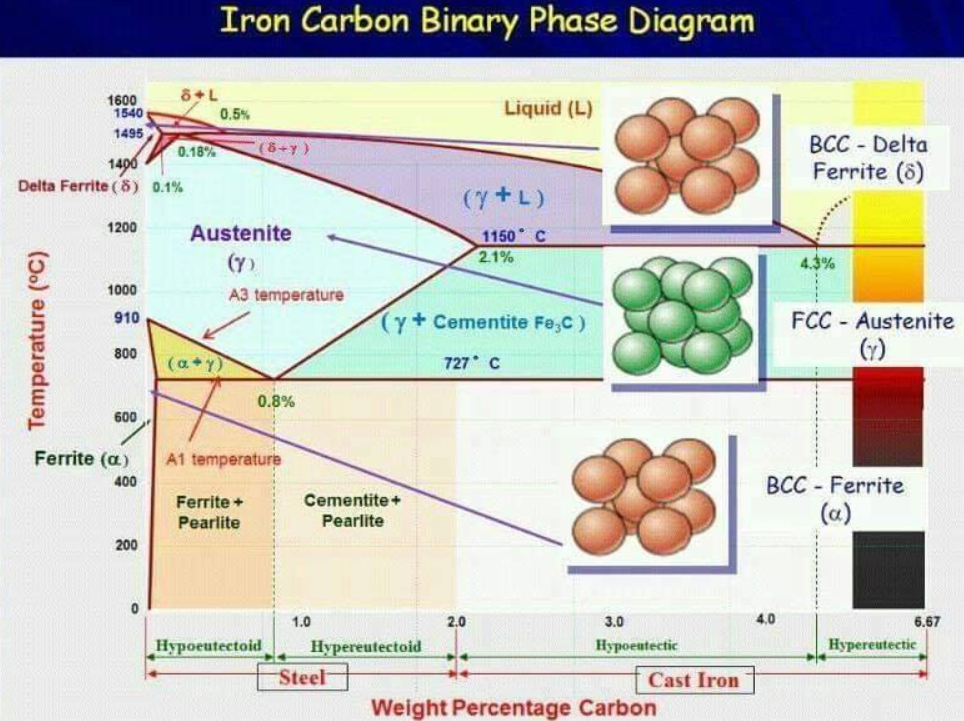 À température ambiante, si la teneur en carbone est inférieure à 0,765 %, la microstructure est composée de ferrite + perlite. Lorsque la teneur en carbone dépasse 0,765 %, la structure devient perlite + cémentite. La ferrite contient très peu de carbone et constitue une phase douce et facilement déformable.
